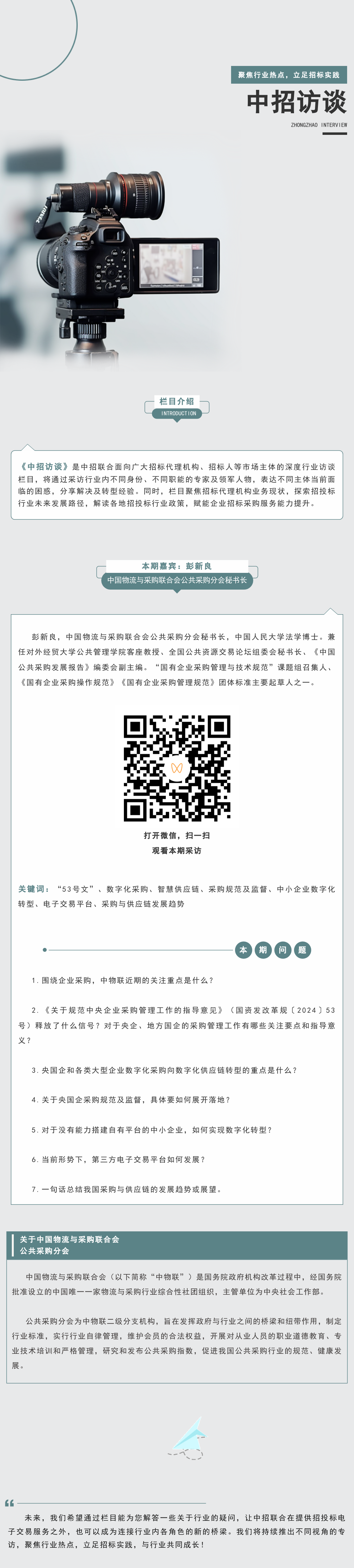 中招访谈丨中国物流与采购联合会公共采购分会秘书长彭新良专访