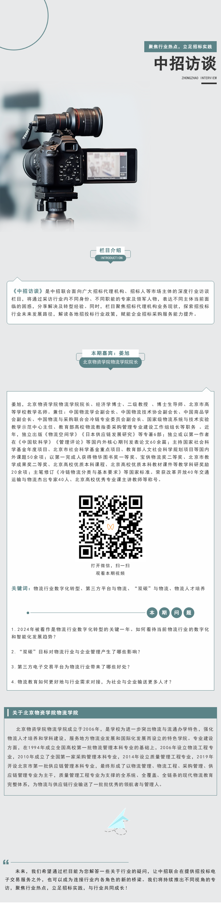 中招访谈丨北京物资学院物流学院院长姜旭专访