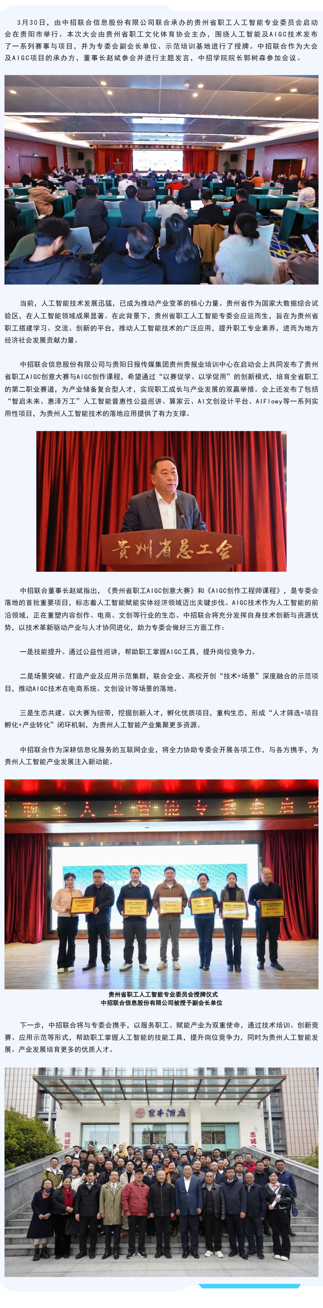贵州省职工人工智能专委会成立 携手中招联合共绘贵州人工智能发展新蓝图