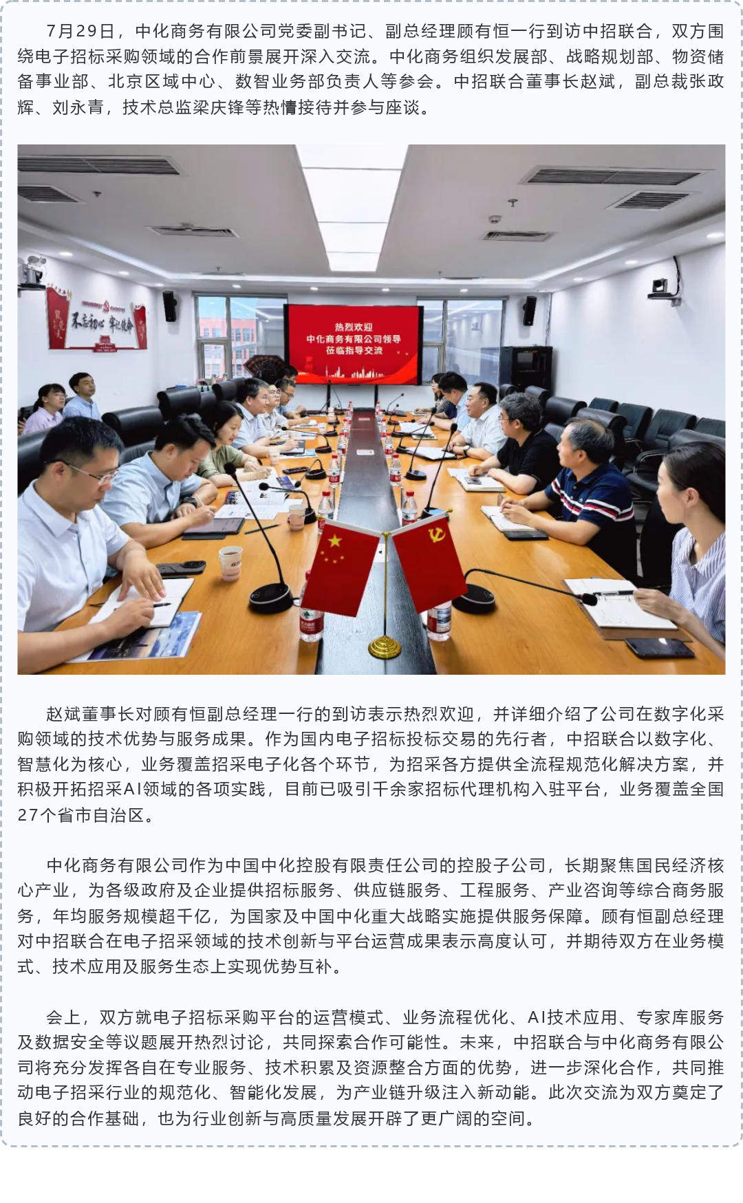 中化商务有限公司来访中招联合 共商电子招采合作新机遇