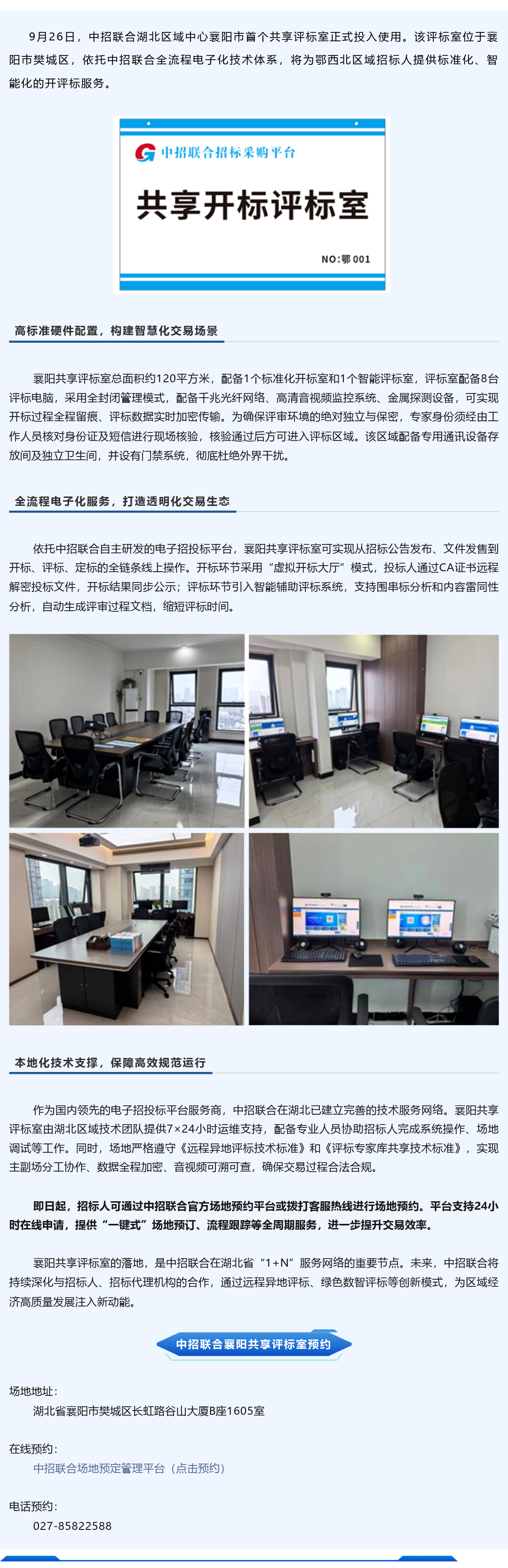 中招联合襄阳市首个共享评标室正式启用 开启鄂西北电子化招投标服务新标杆